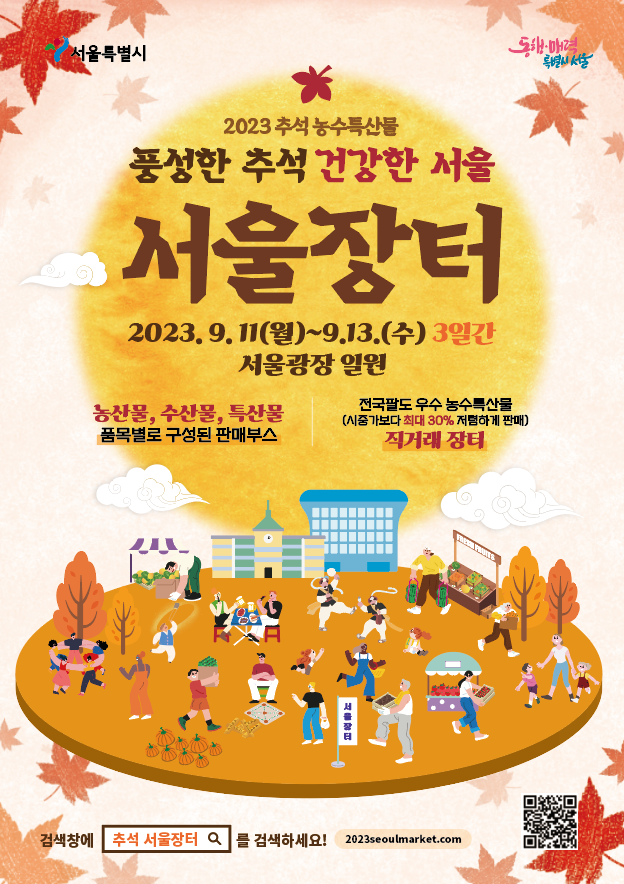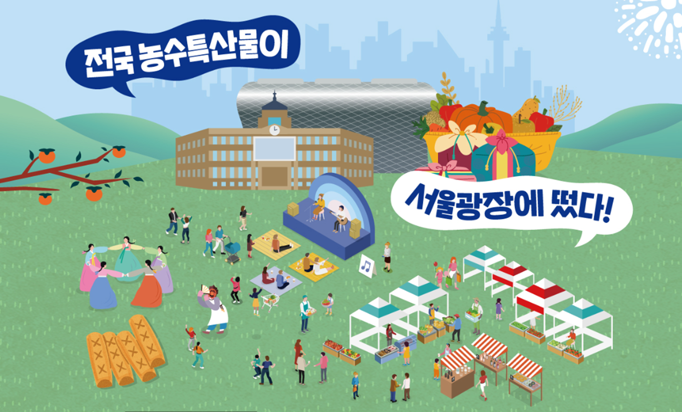 서울광장에서 "추석 서울장터"를 열어 지역 농특산물을 최대 30%까지 할인 판매한다고 합니다.