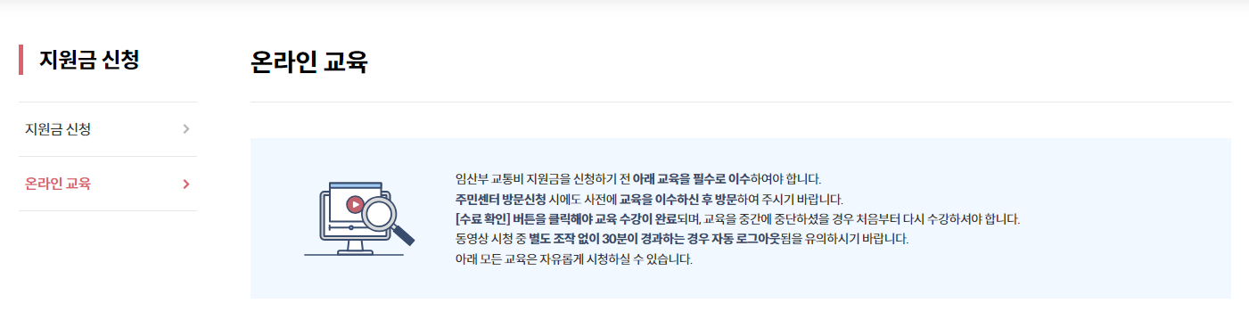 지원금 신청 이전에 온라인 교육을 먼저 수강해야합니다.