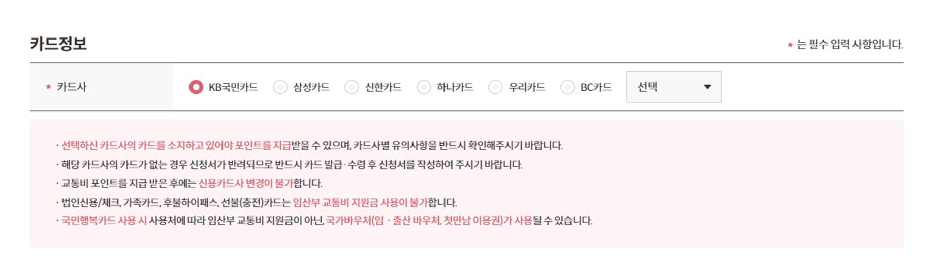 교통비 지급 후 카드사 변경이 불가하므로, 신중하시기 바랍니다.
