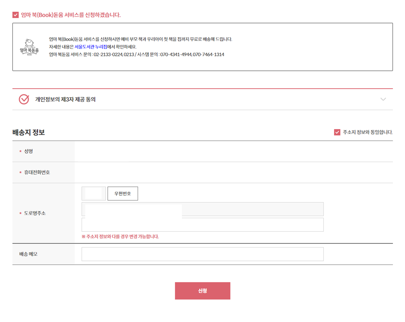3. 엄마 북(Book)돋음 서비스를 함께 신청합니다.