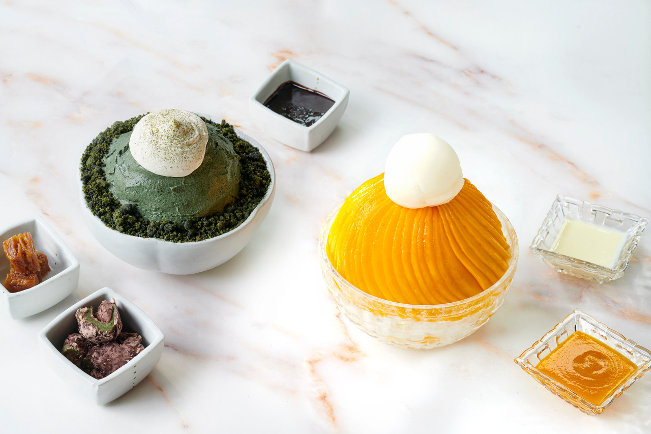 JW메리어트호텔서울이 5월 10일 출시한 '쑥 크림 빙수'에, 오메기떡과 약과가 곁들여집니다.
